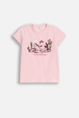 COCCODRILLO T-shirt z krótkim rękawem - różowy z nadrukiem na przodzie - rozmiar 104 - dla dziewczynki