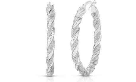 925 Sterling 25MM Spiral Hoop With Crystal Dust French Lock Hoop Earrings 25MM Sterling in Silver | One Size