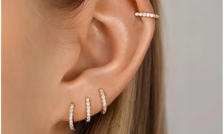 925 Sterling Huggie Hoop Earrings with Crystal Pave Cubic Zirconia Cubic Zirconia Sterling in Silver | One Size