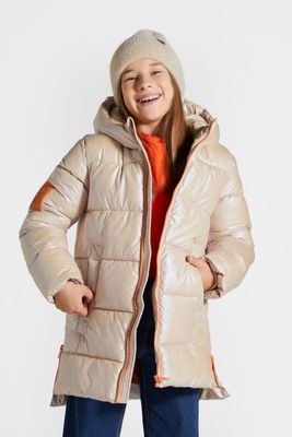 COCCODRILLO Kurtka zimowa - beżowa z kapturem i kieszeniami - rozmiar 158 - dla dziewczynki