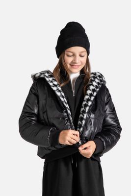 COCCODRILLO Kurtka dwustronna - czarna z kapturem - rozmiar 164 - dla dziewczynki