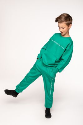 MOKIDA Spodnie dresowe BALLOON - zielone z nadrukiem na nogawce - rozmiar 164 - dla chłopca