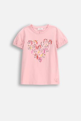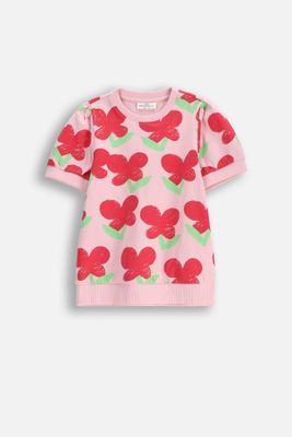 COCCODRILLO T-shirt z krótkim rękawem - różowy z nadrukiem kwiatów na całości - rozmiar 104 - dla dziewczynki