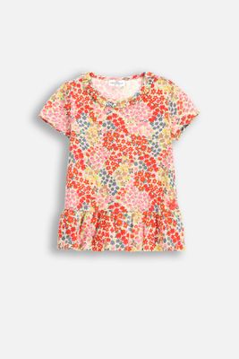 COCCODRILLO T-shirt z krótkim rękawem - wielokolorowy z falbanką i kwiatowym nadrukiem - rozmiar 104 - dla dziewczynki