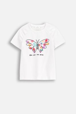 COCCODRILLO T-shirt z krótkim rękawem - biały z nadrukiem motyla na przodzie - rozmiar 104 - dla dziewczynki