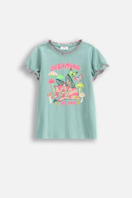 COCCODRILLO T-shirt z krótkim rękawem - zielony ze świecącym nadrukiem na przodzie - rozmiar 104 - dla dziewczynki