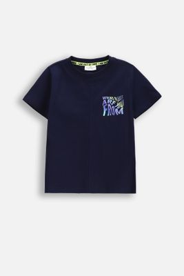 COCCODRILLO T-shirt z krótkim rękawem - granatowy z napisem na przodzie i nadrukiem z tyłu - rozmiar 104 - dla chłopca