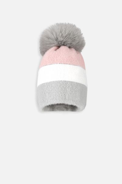 Zimní čepice - dívčí pletená s fleecovou podšívkou - Velikost: 48 - pro dívku