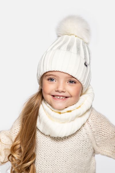 Zimní čepice - dívčí pletená s fleecovou podšívkou - Velikost: 46 - pro dívku