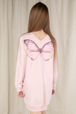 COCCODRILLO Sukienka dzianinowa - różowa z motylem - rozmiar 134 - dla dziewczynki