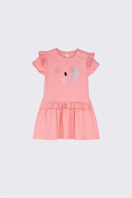 COCCODRILLO Sukienka dzianinowa - różowa z nadrukiem i falbanami - rozmiar 74 - dla dziewczynki
