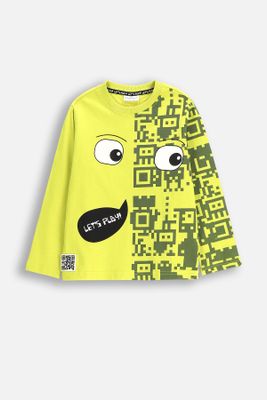 COCCODRILLO T-shirt z krótkim rękawem - limonkowy z piłkarskim nadrukiem - rozmiar 104 - dla chłopca