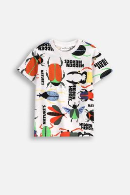 COCCODRILLO T-shirt z krótkim rękawem - biały z nadrukiem owadów na całości - rozmiar 104 - dla chłopca