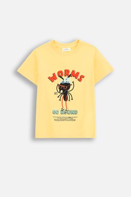 COCCODRILLO T-shirt z krótkim rękawem - żółty z nadrukiem i napisami na przodzie - rozmiar 104 - dla chłopca