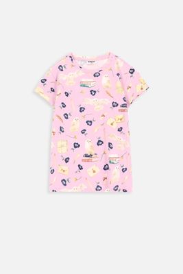 COCCODRILLO T-shirt z krótkim rękawem - fioletowy z nadrukiem misia - rozmiar 128 - dla dziewczynki