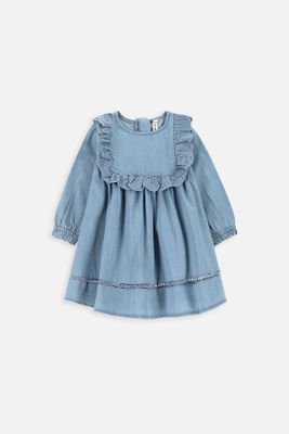 COCCODRILLO Sukienka tkaninowa - niebieska rozkloszowana z falbankami - rozmiar 62 - dla dziewczynki