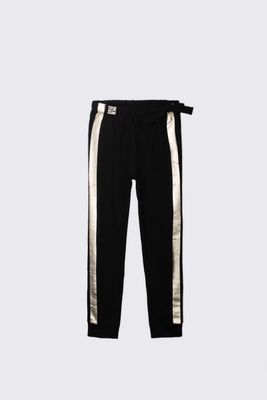 COCCODRILLO Spodnie dresowe - czarne z metalicznymi lampasami - rozmiar 134 - dla dziewczynki