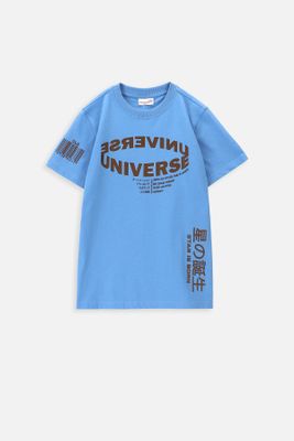 COCCODRILLO T-shirt z krótkim rękawem - niebieski z napisami - rozmiar 122 - dla chłopca