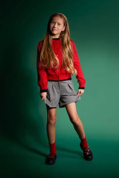 Pletené šortky - vícebarevné s peplite vzorem - Velikost: 134 - pro dívku