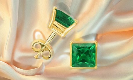 24k yellow Gold Plated 1 Cttw Princess Emerald Stud Earrings May 1 ct Green 2 Pack Emerald Emerald Princess Gold Plated in green | One Size