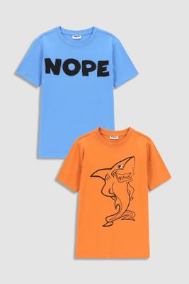 MOKIDA T-shirt z krótkim rękawem 2 pack - pomarańczowy i niebieski z nadrukami - rozmiar 146 - dla chłopca