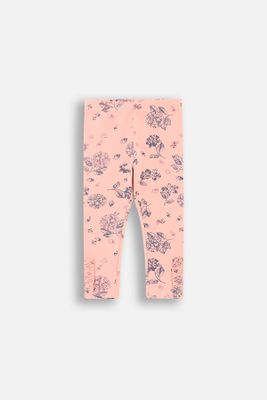 COCCODRILLO Legginsy z długą nogawką - różowe z nadrukiem kwiatów na całości - rozmiar 86 - dla dziewczynki