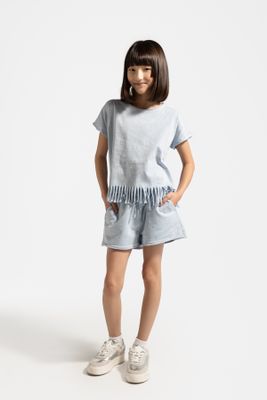 COCCODRILLO Krótkie spodenki - niebieskie z wiązaniem w pasie - rozmiar 140 - dla dziewczynki
