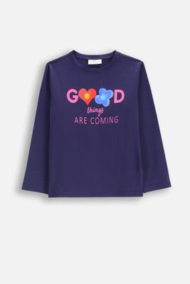 COCCODRILLO T-shirt z długim rękawem - granatowy z napisami na przodzie - rozmiar 104 - dla dziewczynki