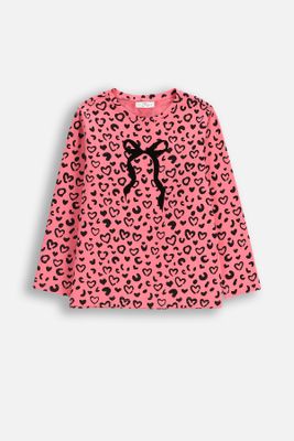 COCCODRILLO T-shirt z długim rękawem - różowy z motywem serduszek na całości - rozmiar 104 - dla dziewczynki