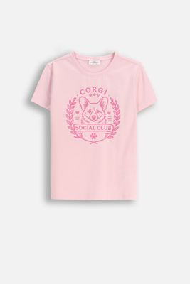 COCCODRILLO T-shirt z krótkim rękawem - różowy z nadrukiem pieska CORGI na przodzie - rozmiar 104 - dla dziewczynki