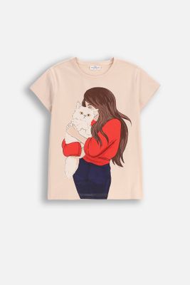 COCCODRILLO T-shirt z krótkim rękawem - beżowy z nadrukiem na przodzie - rozmiar 104 - dla dziewczynki