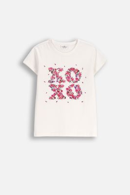COCCODRILLO T-shirt z krótkim rękawem - ecru z kwiatowym nadrukiem na przodzie - rozmiar 104 - dla dziewczynki