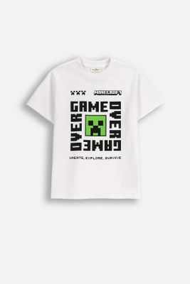 COCCODRILLO T-shirt z krótkim rękawem MINECRAFT - biały bawełniany z nadrukiem na przodzie i z tyłu - rozmiar 152 - dla chłopca