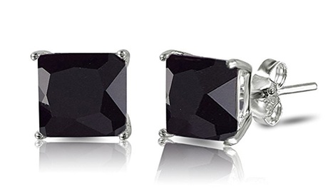Sterling Silver Princess Cut Simulated Black Onyx CZ Stud Earrings 9MM Cubic Zirconia Sterling Silver in black | One Size
