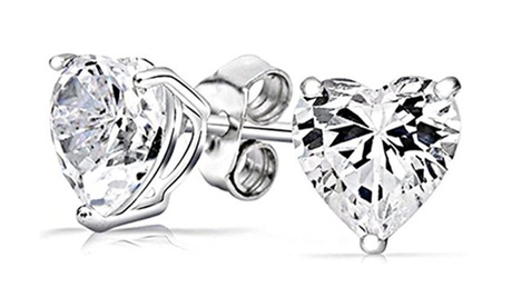 Sterling Silver Heart 8mm 4.00 Carat Total Weight CZ Stud Earrings Cubic Zirconia Sterling Silver in white | One Size