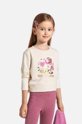COCCODRILLO T-shirt z długim rękawem - ecru z nadrukiem kwiatów - rozmiar 104 - dla dziewczynki