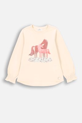 COCCODRILLO T-shirt z długim rękawem - ecru z nadrukiem koni na przodzie - rozmiar 104 - dla dziewczynki
