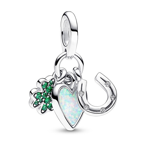Pandora Trojitý strieborný prívesok Štvorlístok, srdce a podkova 792755C01