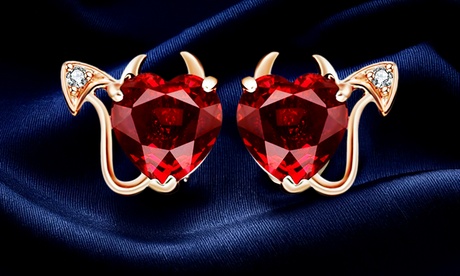 Ruby Stud Devil Earrings in 18K Plating 4 ct July Created Ruby Created Ruby Brass Plated in Gold | One Size