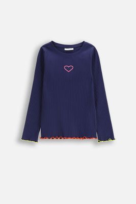 COCCODRILLO T-shirt prążkowany z długim rękawem - granatowy z ozdobnym haftem - rozmiar 98 - dla dziewczynki