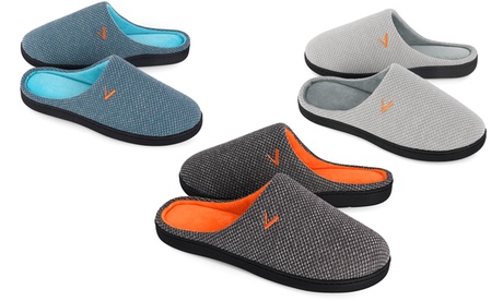 VONMAY MenSlippers Two-Tone Cozy House Shoes Open Back Memory Foam Slippers L