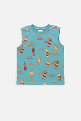 COCCODRILLO T-shirt bez rękawów - niebieska z kolorowym nadrukiem - rozmiar 104 - dla chłopca