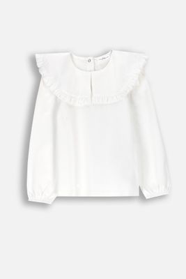 COCCODRILLO T-shirt z długim rękawem - biały z ozdobnym dekoltem - rozmiar 104 - dla dziewczynki