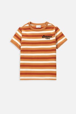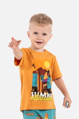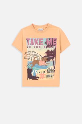 COCCODRILLO T-shirt z krótkim rękawem - pomarańczowy z wakacyjnym nadrukiem - rozmiar 104 - dla chłopca