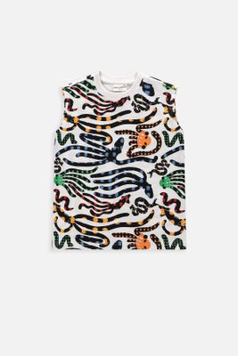 COCCODRILLO T-shirt bez rękawów - biały z nadrukiem na całości - rozmiar 104 - dla chłopca
