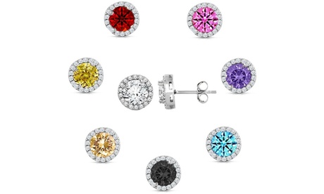 Sterling 3.00 CTTW Cubic Zirconia Halo Studs 3 ct Light Blue Cubic Zirconia Sterling in Silver | One Size