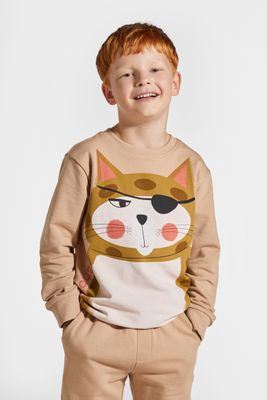 COCCODRILLO Bluza dresowa - brązowa bez kaptura z nadrukiem licencja KOCIA SZAJKA - rozmiar 116 - dla chłopca