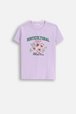 COCCODRILLO T-shirt z krótkim rękawem - fioletowy z kwiatowym nadrukiem na przodzie - rozmiar 164 - dla dziewczynki