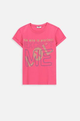 MOKIDA T-shirt z krótkim rękawem - różowy bawełniany z zabawnym napisem - rozmiar 104 - dla dziewczynki