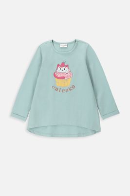COCCODRILLO T-shirt z długim rękawem - miętowy z nadrukiem babeczki - rozmiar 104 - dla dziewczynki